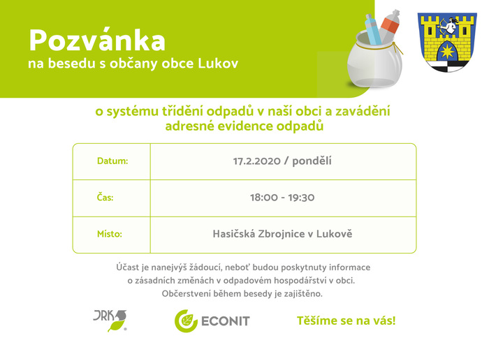 Účast je nanejvýš žádoucí, nebot‘ budou poskytnuty informace o zásadních změnách v odpadovém hospodářství v obci.